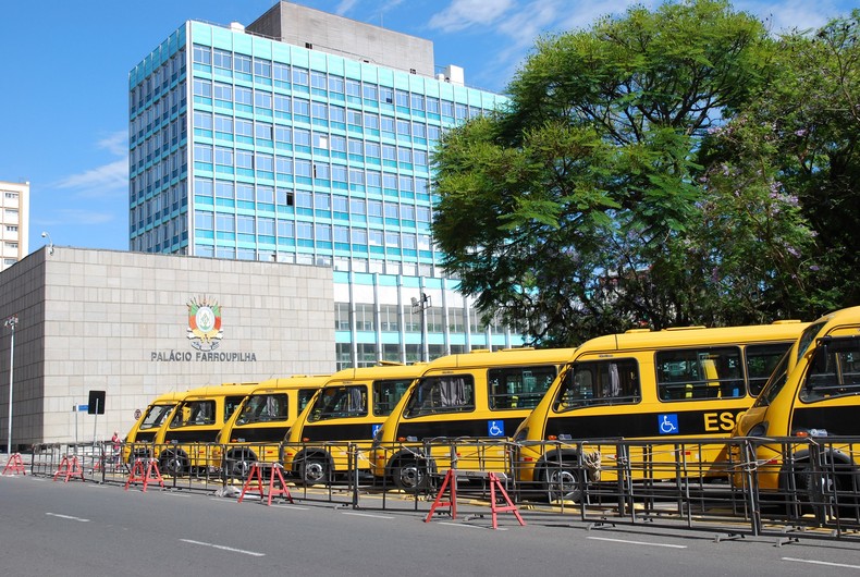 Ato de entrega realizado no dia 27 de novembro no Palácio Piratini. O Governador Tarso Genro realizou a entrega das chaves dos ônibus aos prefeitos . O prefeito em exercício de Maximiliano de Almeida, Claiton Paduani e a secretária da Educação Elenice Zacarias estiveram presente no ato de entrega.