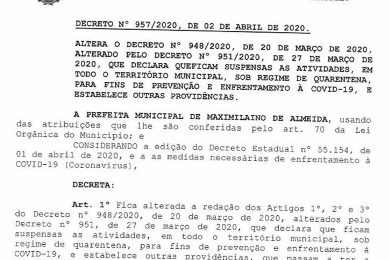 DECRETO Nº 957.2020, DE 02 DE ABRIL DE 2020.