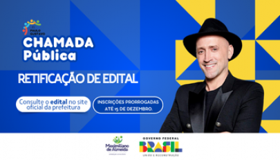 O Município de Maximiliano de Almeida/RS informa que o edital da chamada pública referente à Lei Paulo Gustavo (Lei Complementar nº 195/2022) foi retificado. A data para inscrições foi prorrogada até o dia 15 de dezembro de 2024.