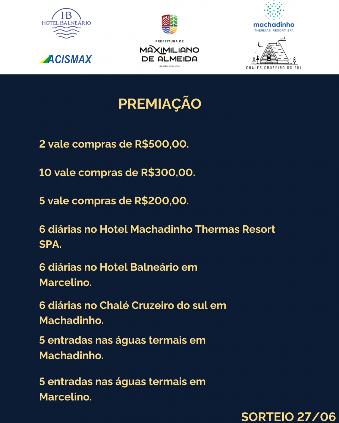 A Prefeitura de Maximiliano de Almeida, em parceria com o CDL (Câmara de Dirigentes Lojistas), lançou a promoção “Passaporte da Sorte”, que visa incentivar a população a valorizar o comércio local e, ao mesmo tempo, oferecer a chance de concorrer a prêmios especiais.